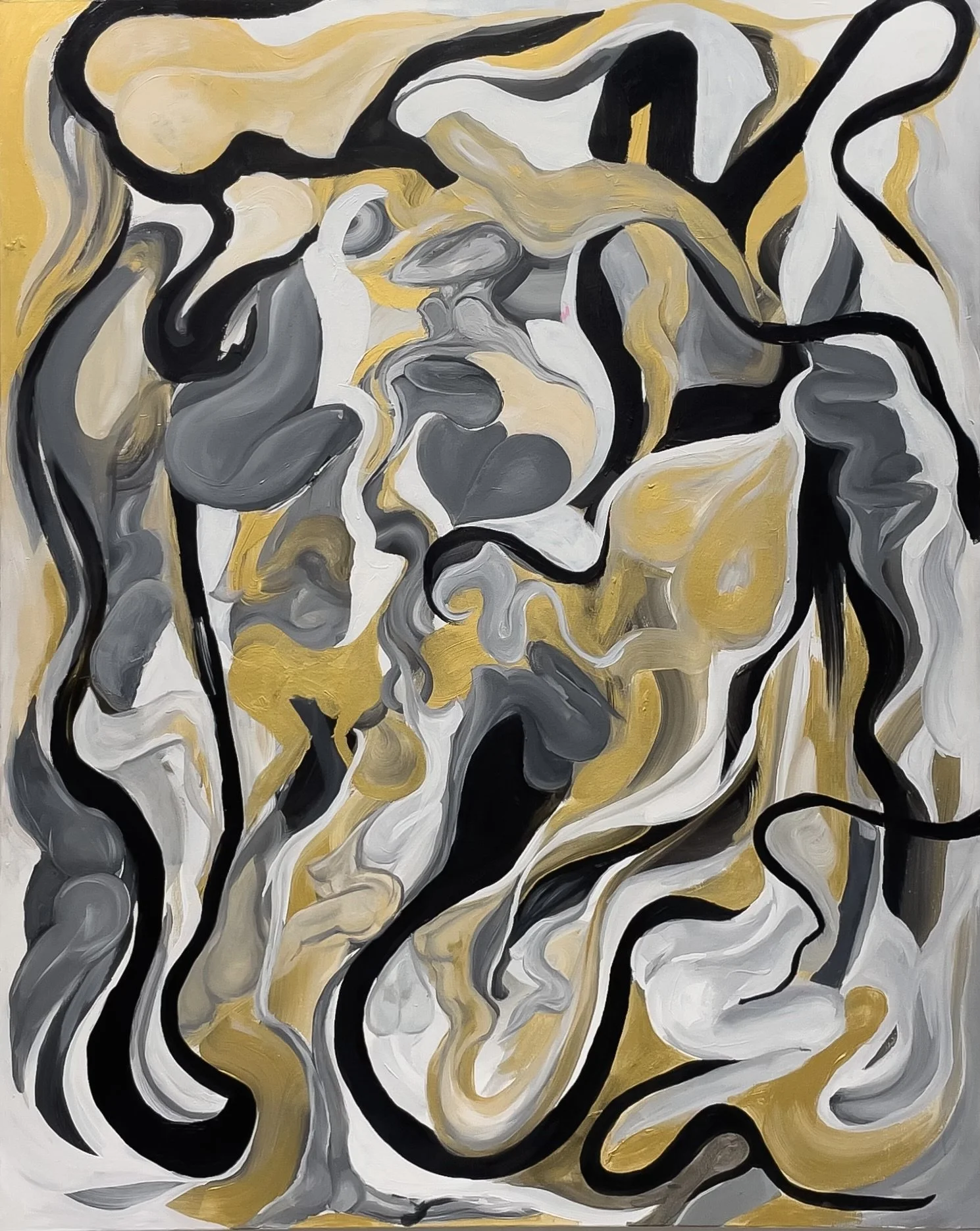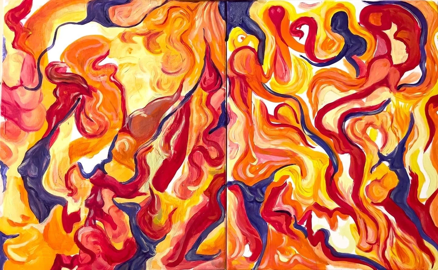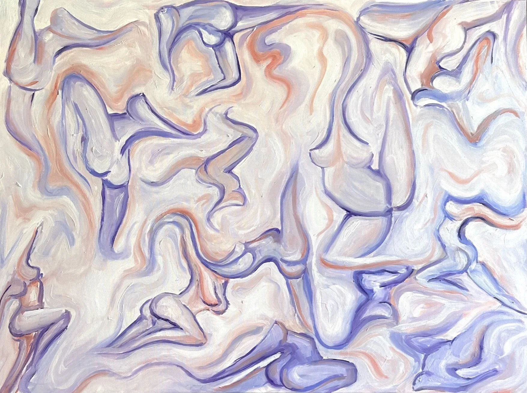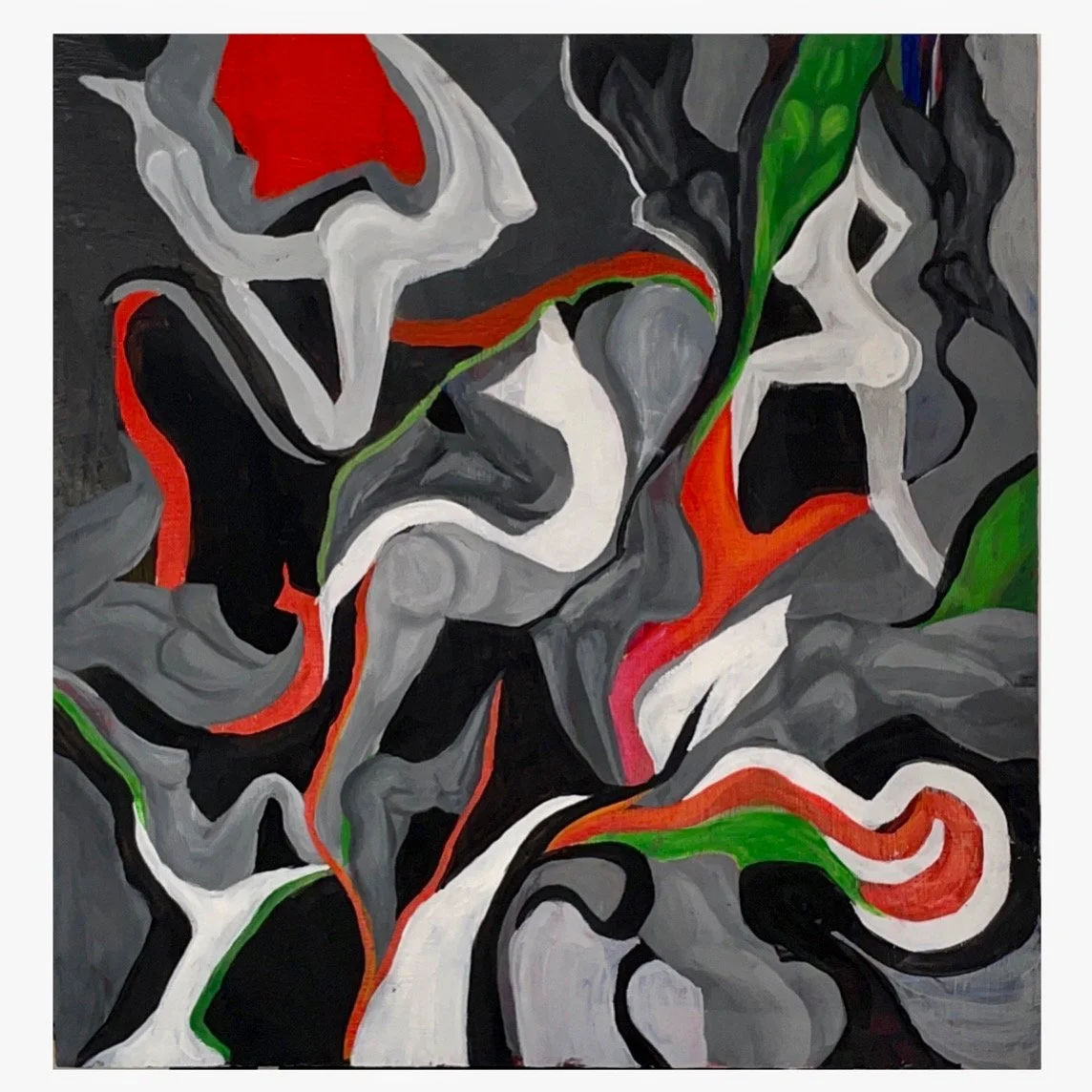 The “Vertigo” series, inspired by the rhythmic flow of music, was the exploration of the connection between visual and audio art forms. Every piece is designed to hold the viewer's gaze and guide the eye around the canvas in a similar flow that is heard in music. The combination of melody and lyrics lead to a blend of abstraction and figuration in the subject matter. There were no preconceived expectations of how the pieces would turn out. I did not intentionally plan any part of any of the pieces but rather allowed the music to guide my creative choices in color, composition, brush manipulation, and brush size. This allowed each piece to be somewhat performative and majorly done in one sitting or two.